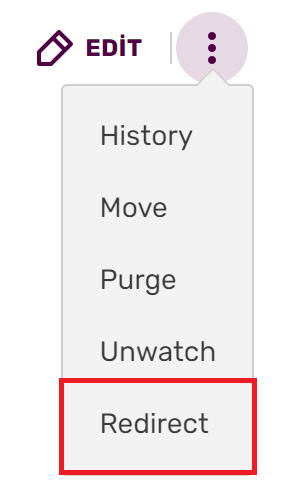AjaxRedirect ajoute un bouton "Rediriger" à ceux dans le menu déroulant du bouton "Modifier". Une fois cliqué, le bouton fera apparaître une pop-up demandait vers quel nom de page la page actuelle devrait rediriger. Une fois l'action confirmée, la page modifiée redirigera automatiquement vers celle qui a été spécifiée par l'utilisateur.