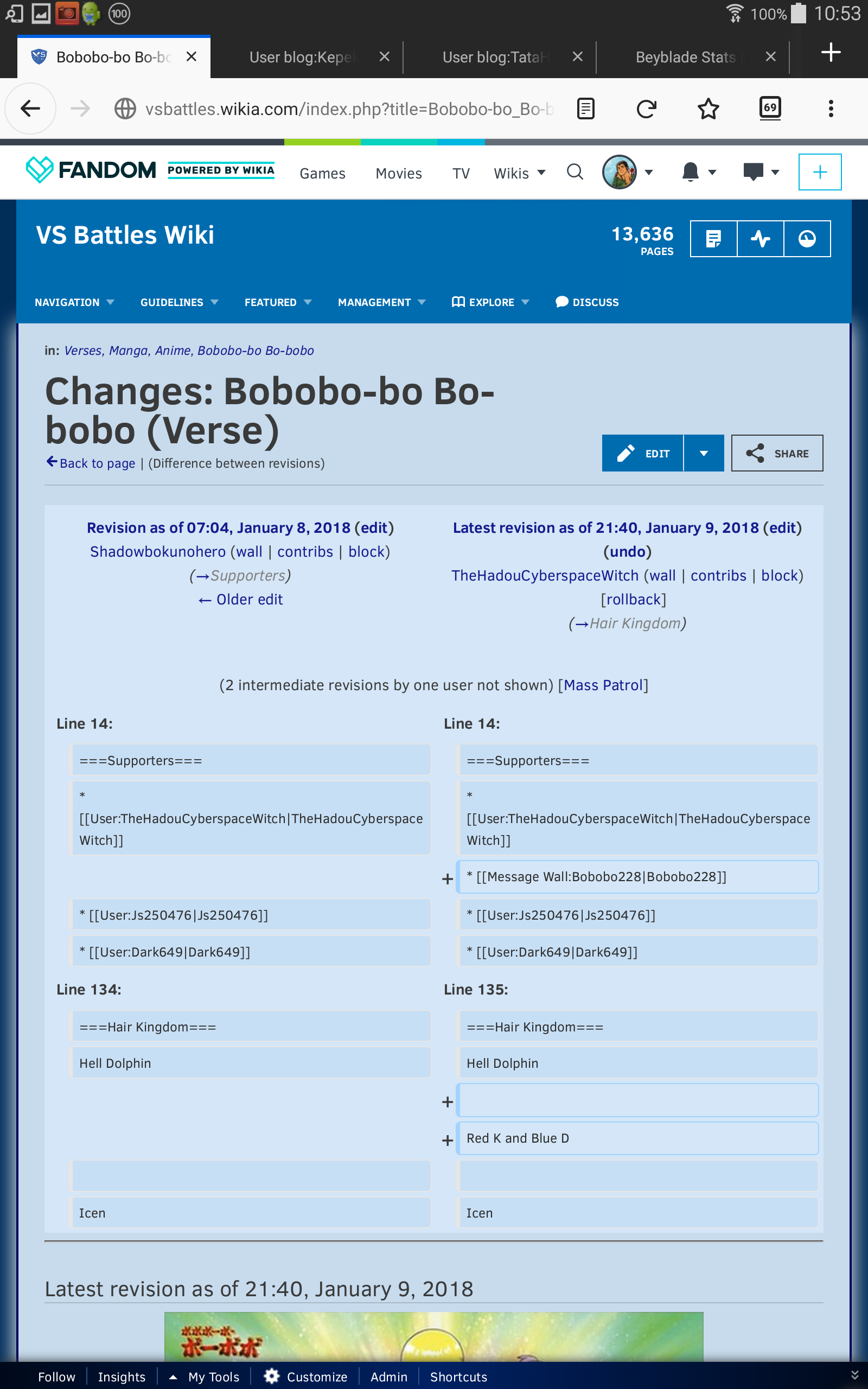 Un clic en el botón permite que el script patrulle todas las revisiones pasadas de la página hasta la revisión que se está viendo actualmente.