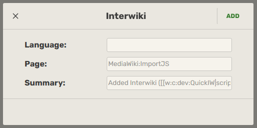Добавление интервики ([[w:c:dev:QuickIW|скрипт]]).