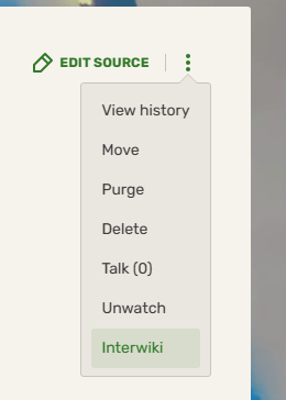 QuickIW — это скрипт, который позволяет быстро и легко добавлять межъязыковые ссылки. Для использования скрипта откройте меню вверху страницы с 3 точками (рядом с кнопкой "Edit") и нажмите опцию "Интервики", которая открывает меню.