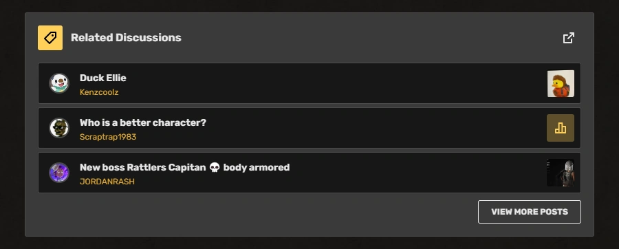 RelatedDiscussionsPosts shows three latest posts from Discussions on article pages that have the article's name as the tag. If the number of posts exceeds three, it displays a link to view the rest. Functionally, it is similar to the legacy block of forum topics.